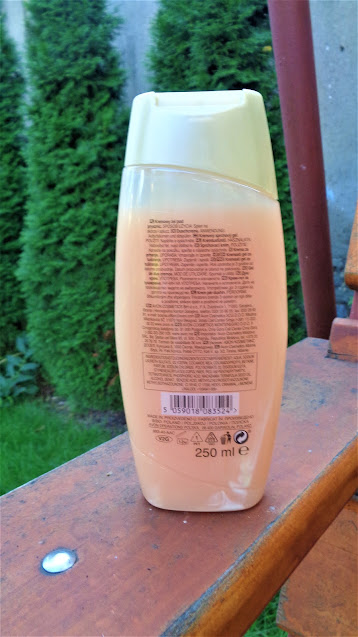 Gęsty, kremowy żel w kolorze jasnej brzoskwini pachnie lekko brzoskwiniowo. Nie wyczuwam w nim nut wanilii, ale pamiętajcie, że każdy z nas trochę inaczej odczuwa zapachy. Bardzo dobrze się pieni, czy to użyty na myjce, czy też na samo ciało. Dobrze myje i pielęgnuje naszą skórę. Żel ten nie wysuszał mojej skóry, ani powodował żadnych podrażnień czy uczuleń. Zapach nie pozostawał na skórze, a może jest tak subtelny, że go nie wyczuwałam.